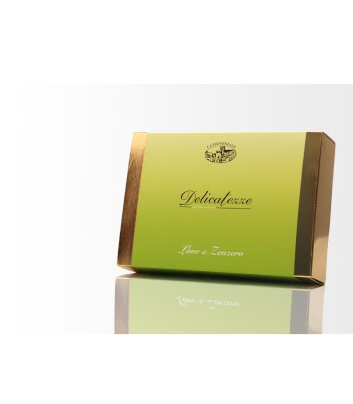 Tender hazelnut paste, tasty almonds, a touch of white chocolate accompanied by the unmistakable flavor of ginger and the exotic touch of lime. All sealed by a layer of fine dark chocolate.