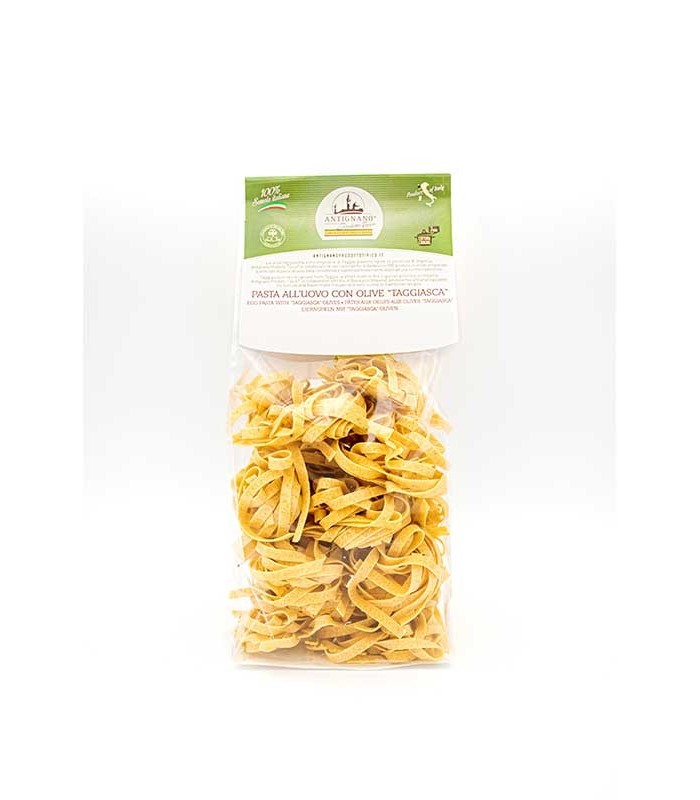 Ingredients: Italian durum wheat semolina, Eggs 20%, "Taggiasca" olives 4% (olives, salt, natural flavors, citric acid)